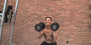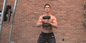 4.Dumbbell squat and shoulder push (legs, shoulder muscles)