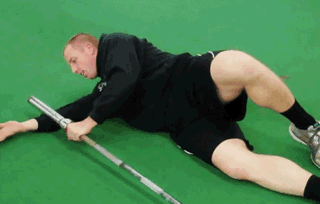 - Begin rolling the barbell back and forth, moving it along the length of the muscle. Use your arms and legs to control the movement and intensity of the pressure applied.