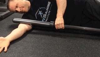 Rolling barbell for massage or staying in a certain area for adjacent joint movement.